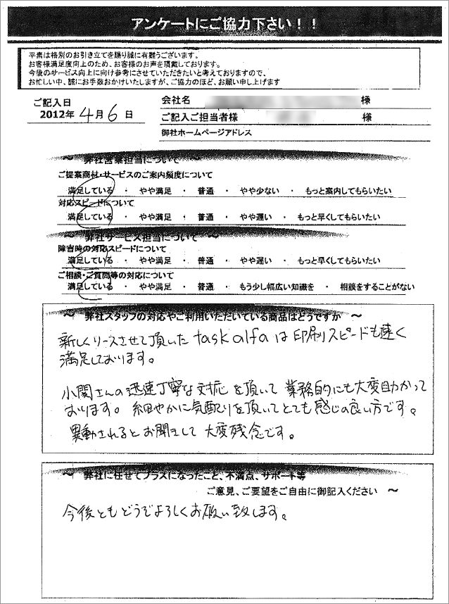 弊社アンケートによせられたお客様の声のいくつかをご紹介します。